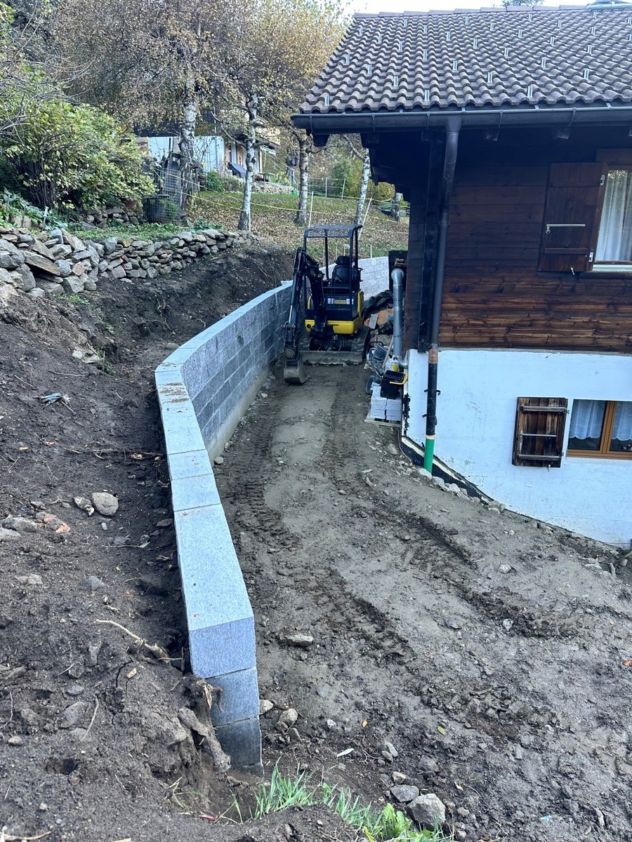 Bau einer stabilen Stützmauer für sicheren Halt eines Mehrfamilienhauses