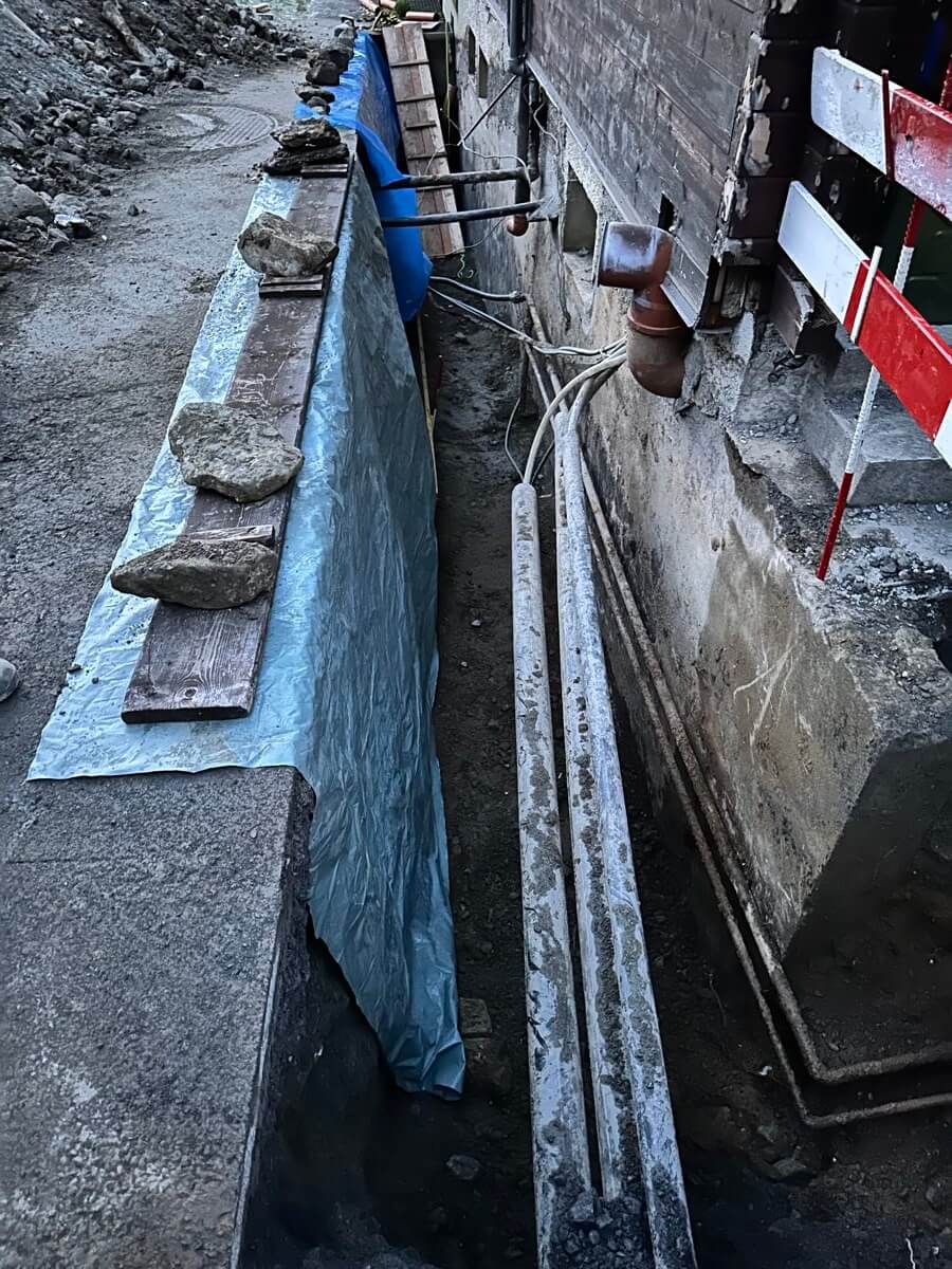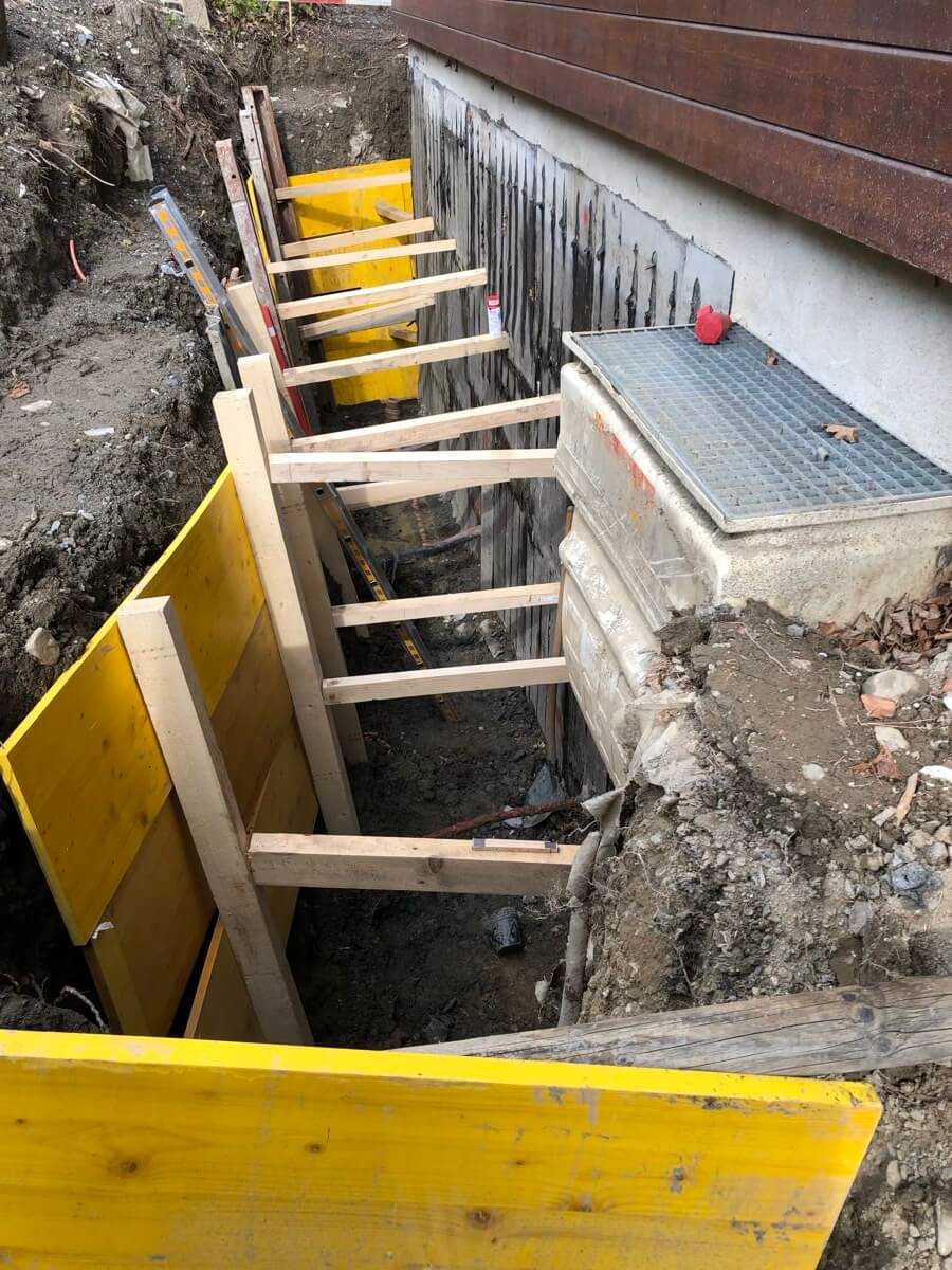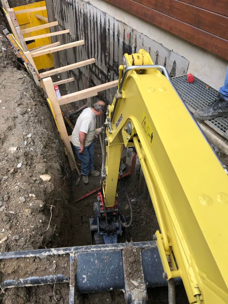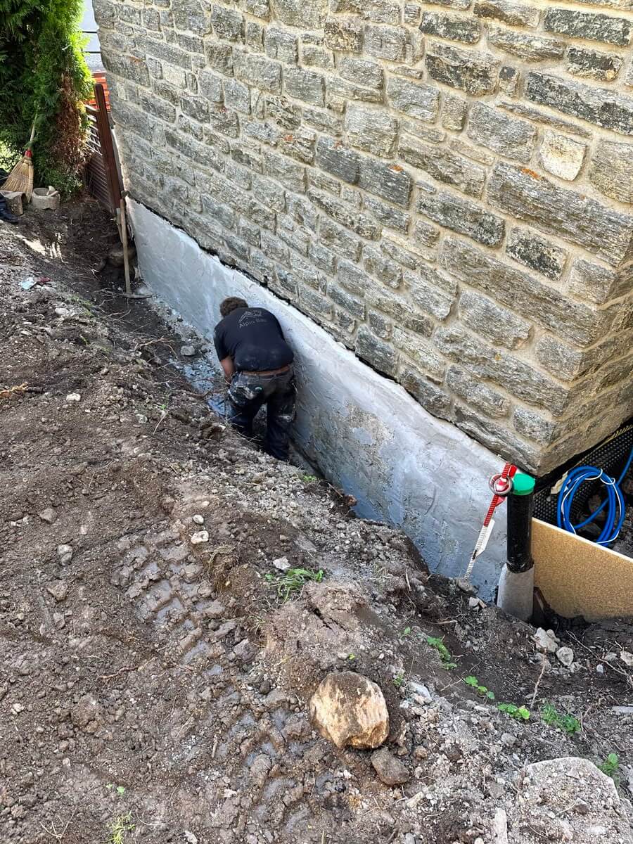 Installation moderner Drainagesysteme und Abdichtungen für langfristigen Schutz vor Feuchtigkeit.