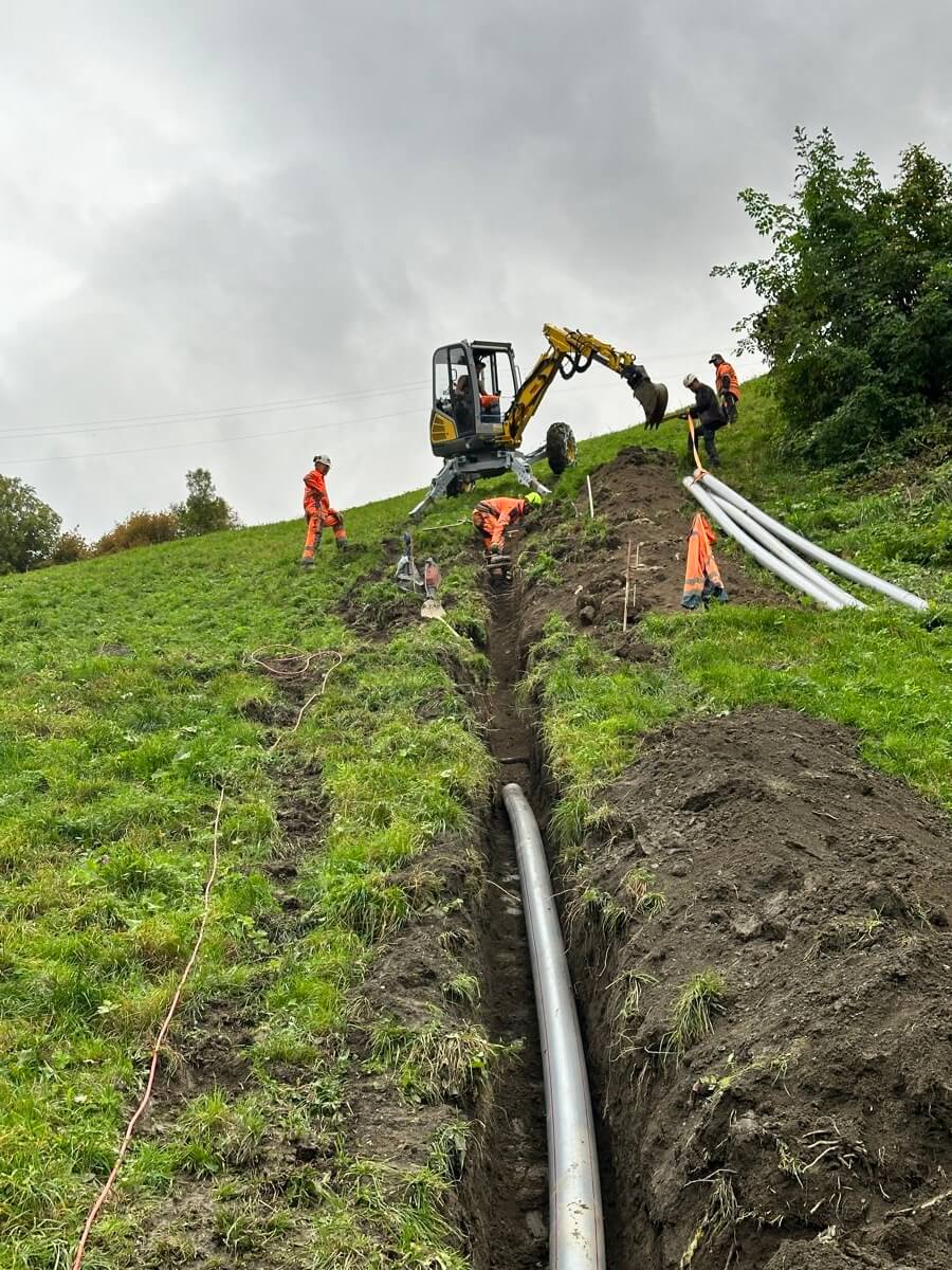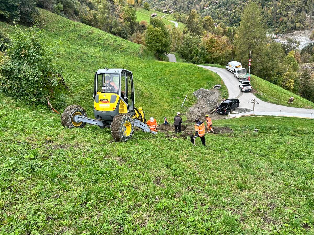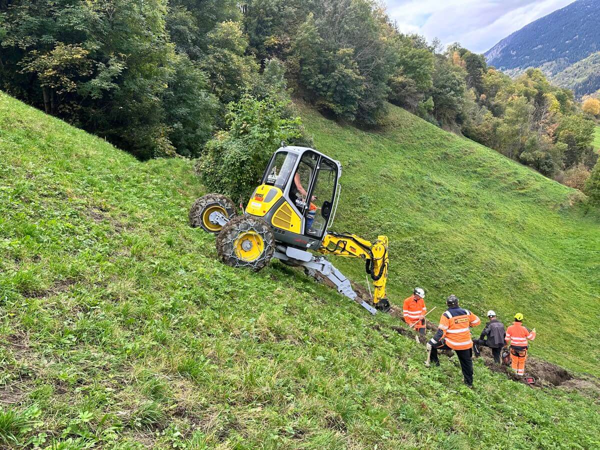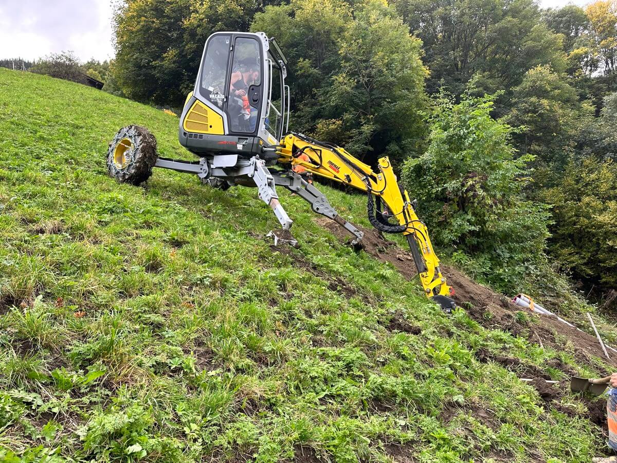Präzises Verlegen von Stromleitungen mit dem Schreitbagger in anspruchsvollem Gelände.