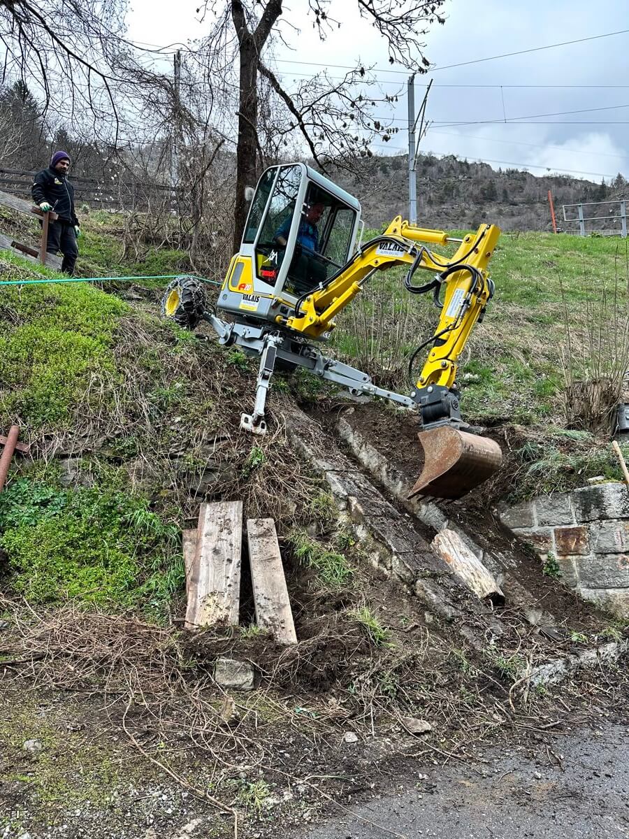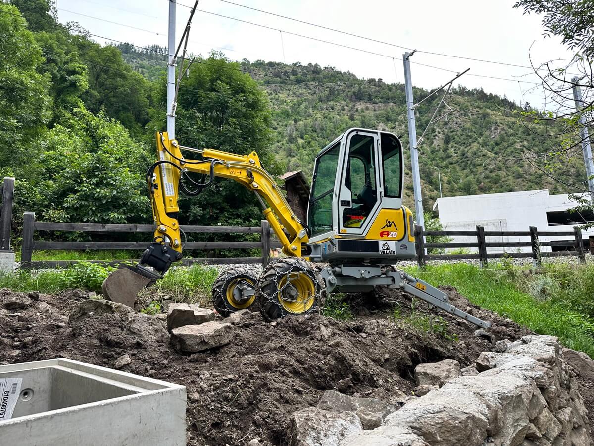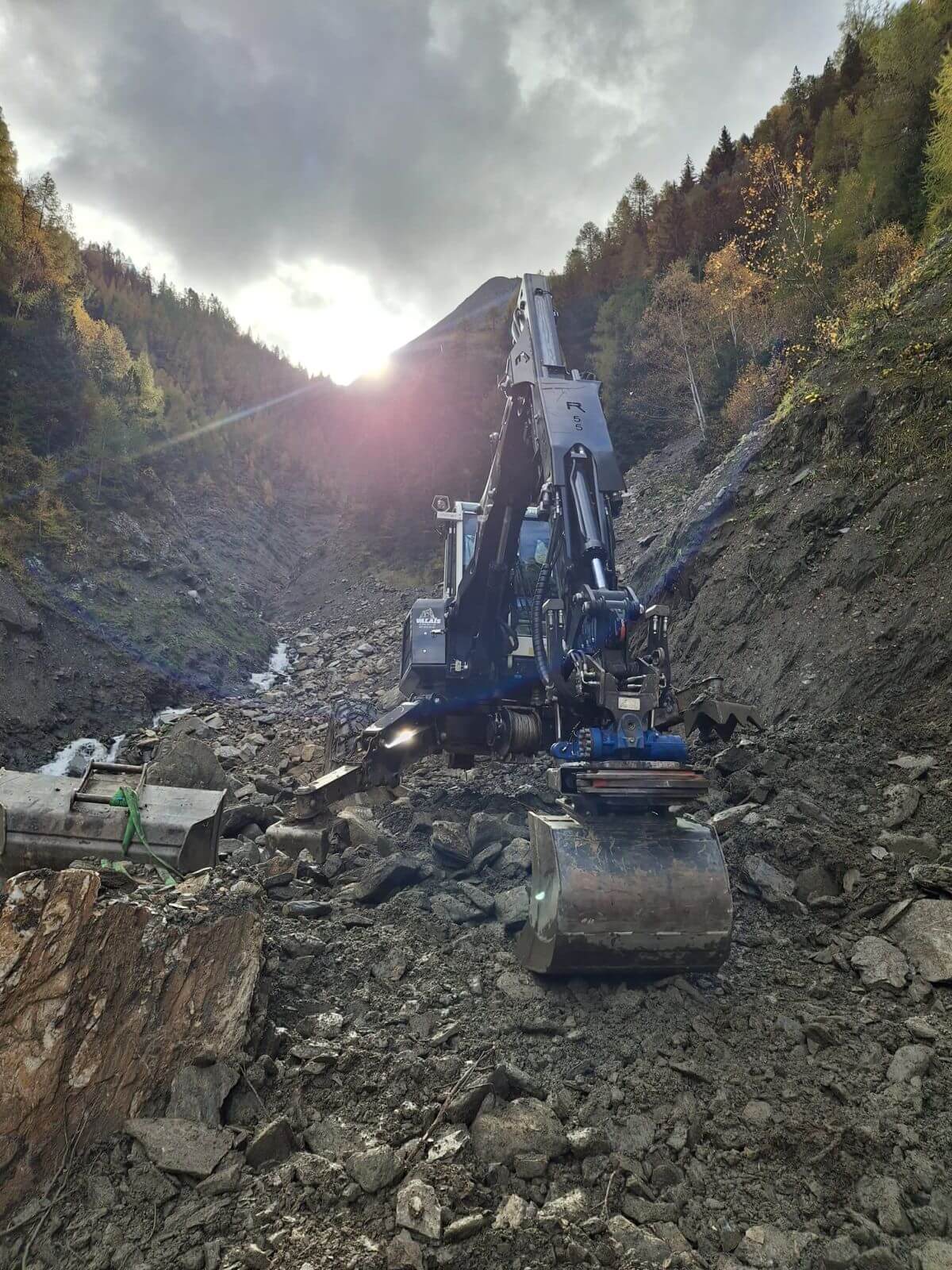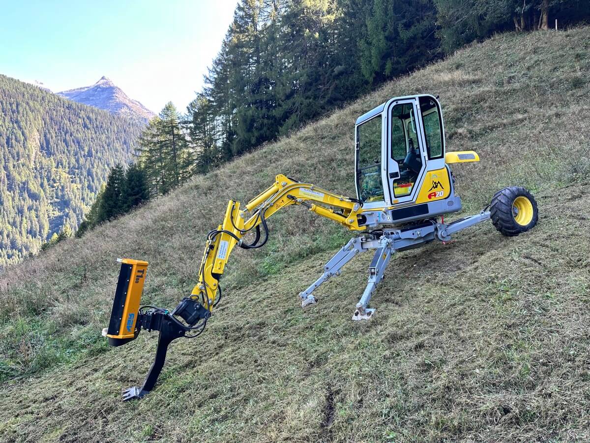 Präzises Verlegen von Stromleitungen mit dem Schreitbagger in anspruchsvollem Gelände.
