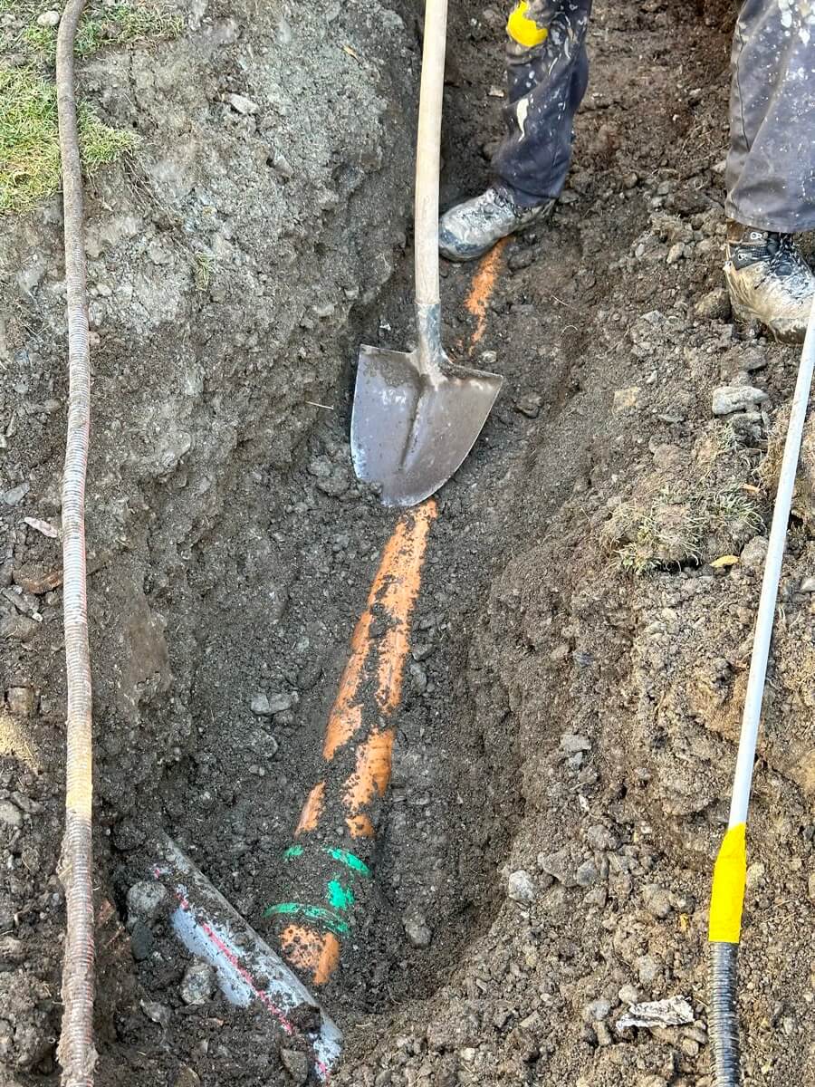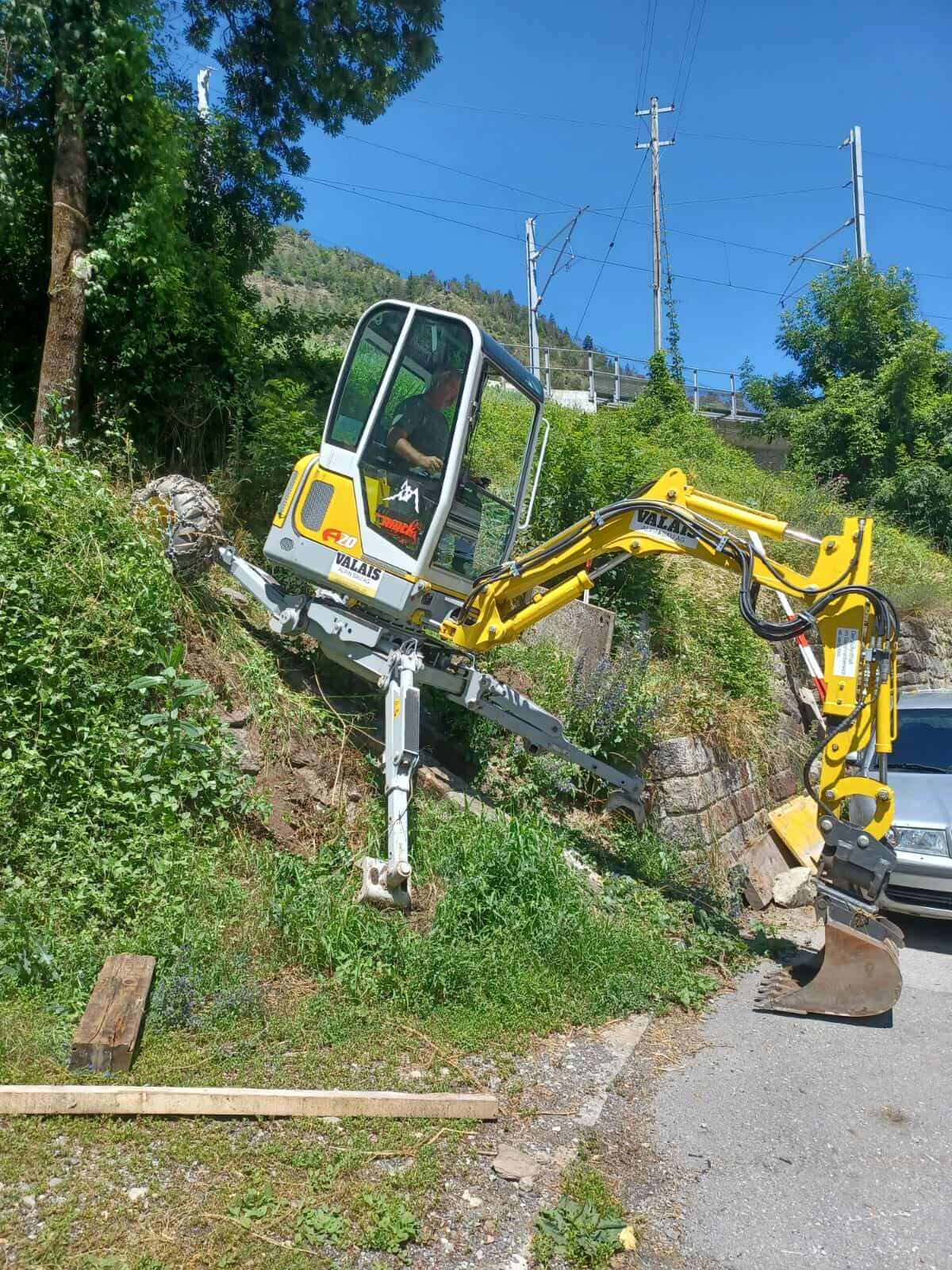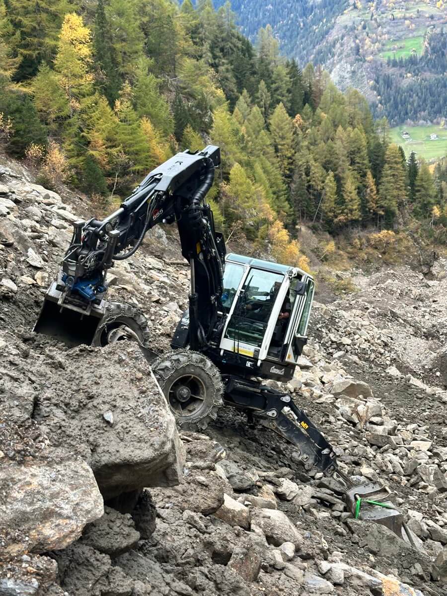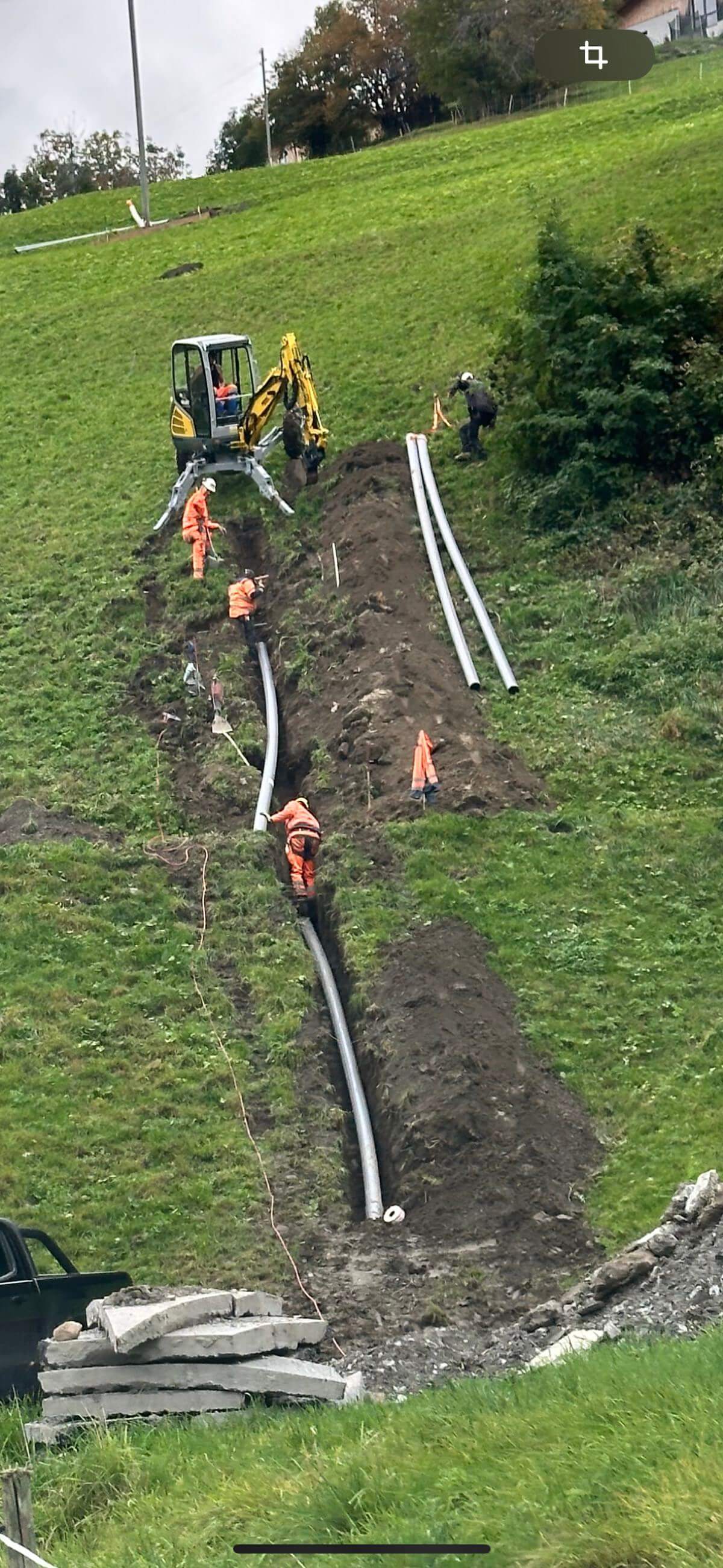 Präzises Verlegen von Stromleitungen mit dem Schreitbagger in anspruchsvollem Gelände.