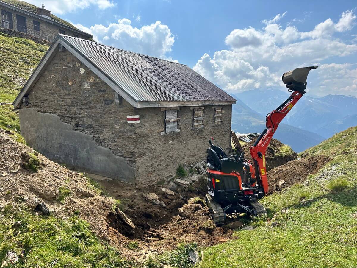 Erstellung eines robusten Fundaments für ein Chalet im alpinen Gelände.